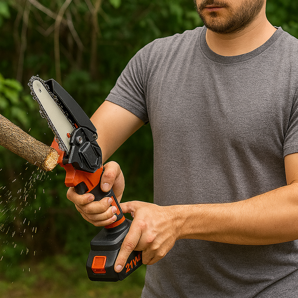 Urządzenie jest lekkie i poręczne – waży około 1–1,5 kg, dzięki czemu nawet dłuższe cięcie nie męczy rąk.