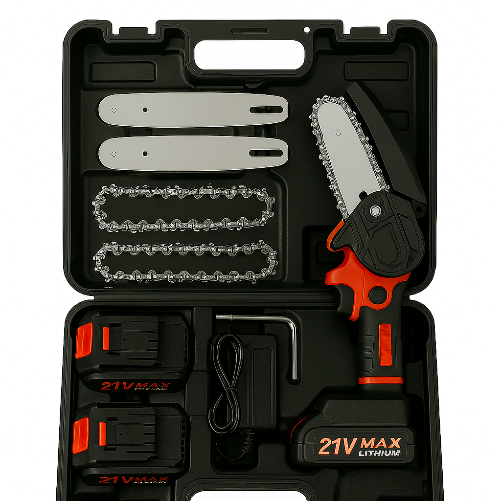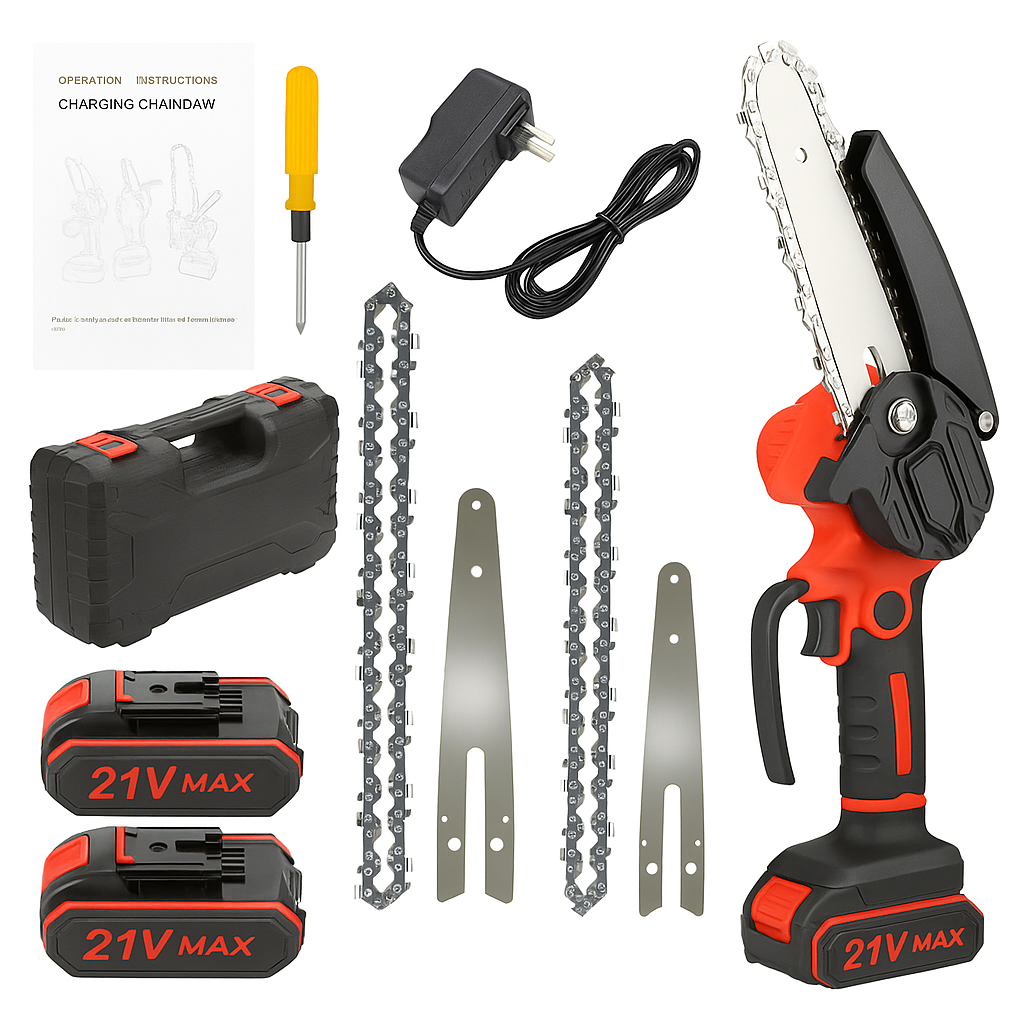Pilarka łańcuchowa Elumena to idealne rozwiązanie dla majsterkowiczów i profesjonalistów. Została wykonana z wysokiej jakości materiałów, które gwarantują wytrzymałość i bezpieczeństwo podczas użytkowania. Komplet zawiera: 2 łańcuchy, 2 prowadnice, 2 akumulatory litowo-jonowe o pojemności 21V, ładowarkę, osłonę na prowadnicę oraz zestaw kluczy do konserwacji i montażu. Dzięki kompaktowej i ergonomicznej budowie pilarka świetnie sprawdzi się w trudno dostępnych miejscach – w garażu, na budowie i w ogrodzie. To narzędzie, które umożliwia wygodną i bezpieczną pracę przez wiele godzin.